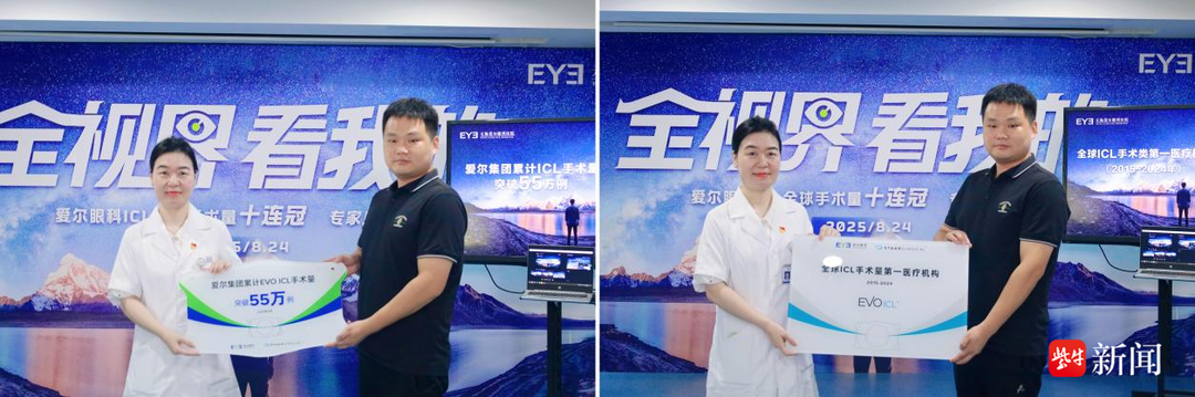 授牌典礼上,STAAR Surgical公司苏皖区域厚爱东谈主王永飞先生与熊娟主任共同上台,授予爱尔眼科“环球ICL手术量第一医疗机构(2015-2025)”荣誉认证,充分确定其在ICL领域的捏续引导力和特等孝顺。