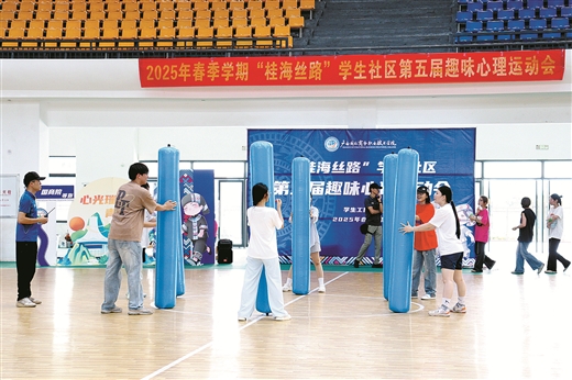 “桂海丝路”学生社区神气通顺会流畅举办五届,累计4.3万东说念主次参与,设想原理团体样式,以体强心。2024年神气文化节推出30余项主题活动,“神气阛阓”“神气科普展”“湖畔疗愈音乐会”等劝诱繁密学生参与。常态化宣传栏目《隐衷周周聊》推出60余期,营造“周周有主题,月月有要点”的宣传氛围。